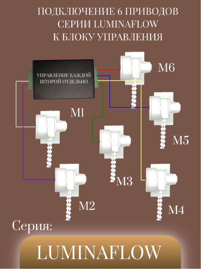 Подключите приводы серии LuminaFlow или аналогичные моторы к соответствующим разъемам на корпусе