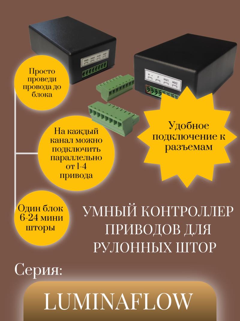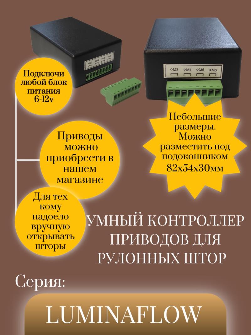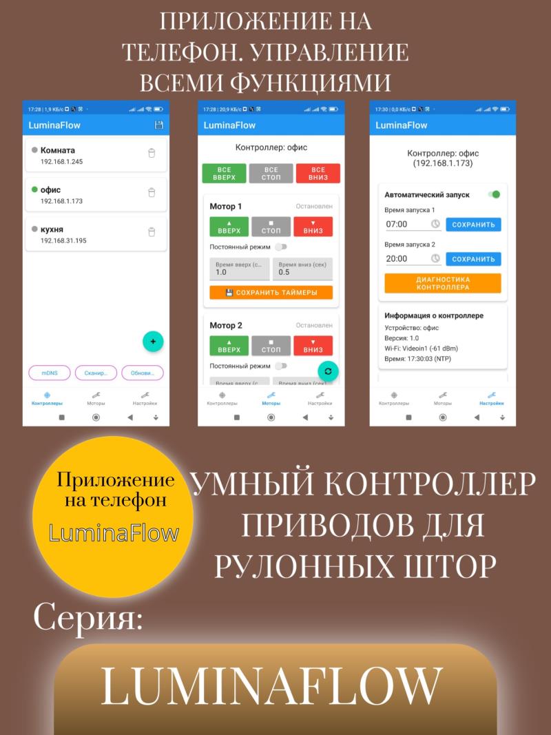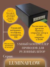 LuminaFlow — это многофункциональный контроллер, созданный для автоматизации управления рулонными ми-шторами и шторами день-ночь, электрокарнизами не оснащенными блоком управления и другими устройствами. Подключайтесь к системе через Wi-Fi, настраивайте расписание работы или управляйте открытием штор в реальном времени через удобный веб-интерфейс или приложение для телефона.